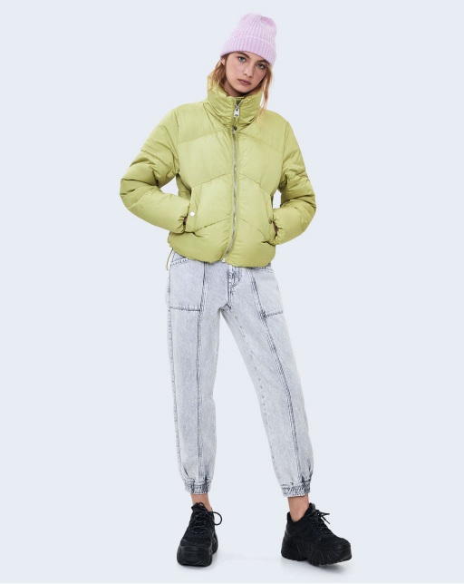 ژاکت عایق از چرم ساخته شده است. یک لایه سبک عایق. جزئیات: یقه ایستاده ، زیپ ، دو جیب در کناره ها.